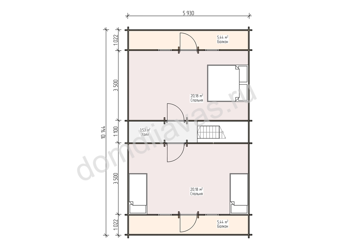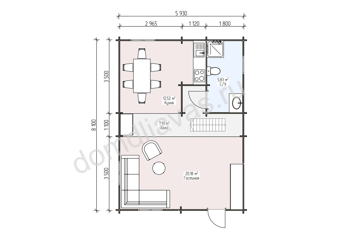- Внешние размеры 5,9х8,1 м